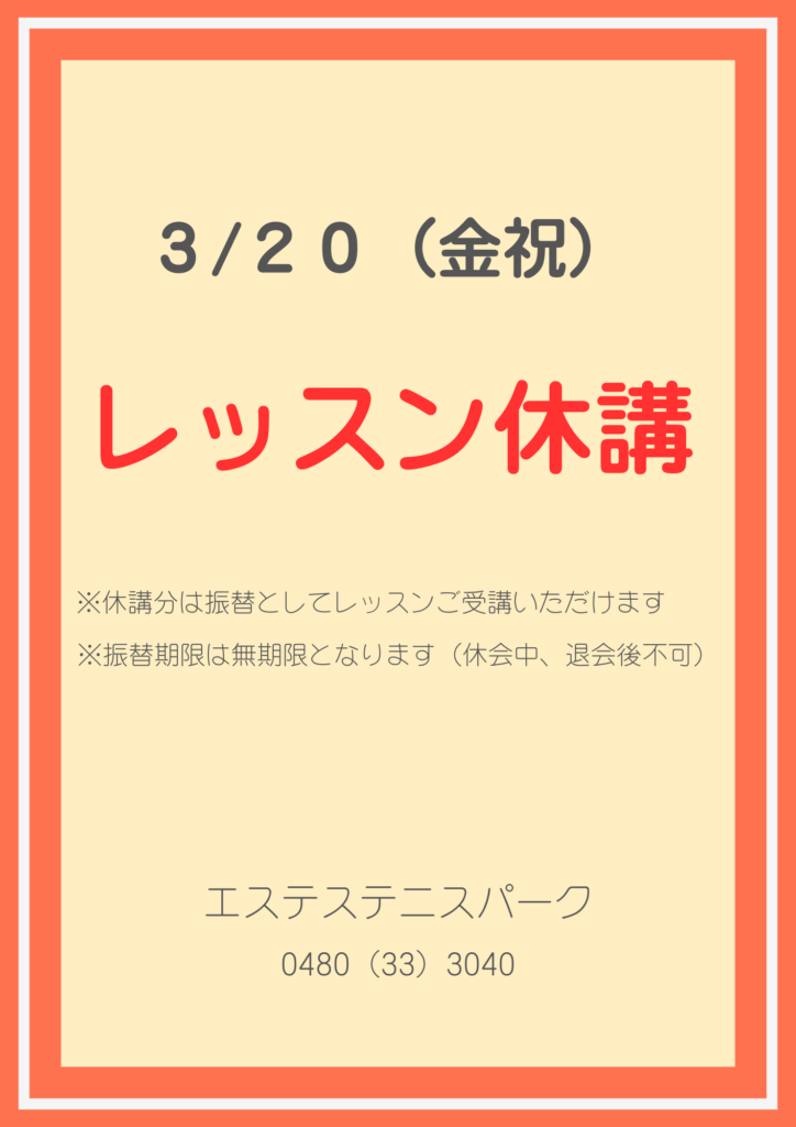 3/20 レッスン休講のお知らせ