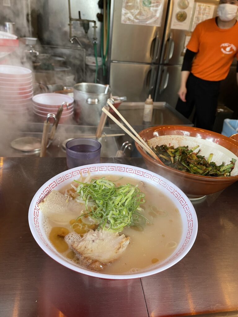 味は、あっさりしつつもコクのある豚骨スープが特徴で、卓上に置かれているキムチやニラなどで味変をすることが出来ます。😳