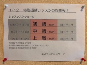 1/12(月祝)特別振替レッスンのお知らせNew!!
